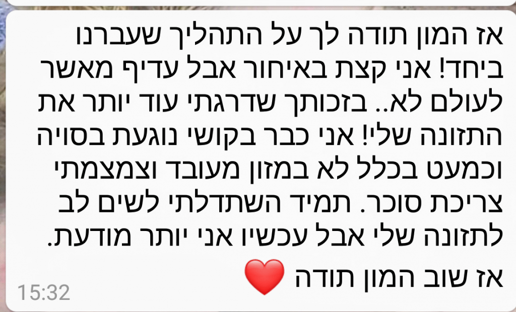 מטופלות רבות הגיעו מתוך רצון לאזן את משקלן, להרוויח חיוניות ולהנחיל אורח חיים בריא בביתן.